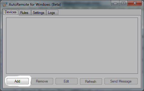 • First, add your device(s). Click the “Add” button.