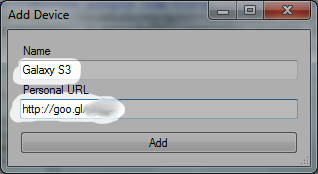 • Name your device and enter its personal URL.
