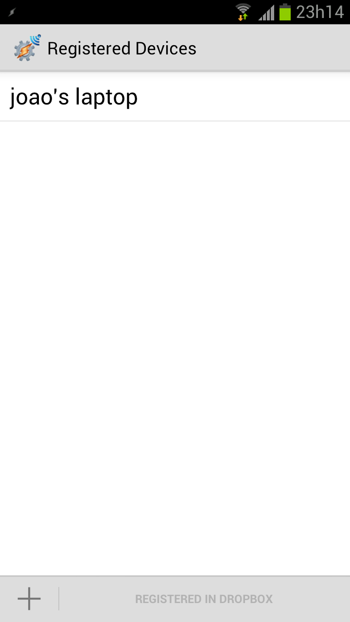 • If you still can’t get it to work, you can go the Dropbox way. In AutoRemote on your device go to the Registered Devices screen and register for dropbox integration. If you don’t have dropbox installed on your PC, you can get it here.